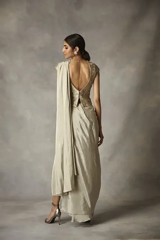 Royal Blue Gold Thread Embroidered Blouse & Lehenga Set